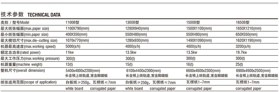 SRC1500/1650型半自动平压平模切机是我公司结合国内外同类产品的优势研发的适用于彩箱、彩盒模切的专用设备。本设备采用高强度牙排、先进叼牙机构能适应各类型纸板、瓦楞纸、卡纸;前后定位及侧定位机构使纸张的模切精度得以保证,具备高精度间歇机构,动作迅速的气动离合、气动锁版。机器的故障显示使故障排除操作非常方便。全套进口电器控制主电机,无极调速,运行平稳。本设备多处设有传感器和安全装置,保障机器正常工作和人身安全。模切压力前后可单独调节,手动盘车方便省力。