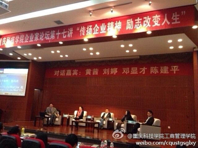 2013年11月21日晚,重科工商管理学院举办的第四届”传杨企业精神,励志改变人生“企业家巡讲会,在学院学术厅举行,对话嘉宾由重庆市著名企业家邓显才等四人参加,巡讲会有近千名大学生到场,现场气氛活跃,嘉宾精彩的演讲深受学子喜欢。